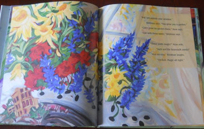 The Birdman sits in his wheelchair, feeding his friends, the pigeons. He thinks the birds are beautiful, but young Rose would much rather look at beautiful flowers in the garden. The Birdman gives Rose some seeds -- magic seeds, he says -- and instructs her to "plant" them on her windowsill. What kind of garden will grow from these magic seeds? It turns out to be an unusual garden, not quite what Rose expected, but a lovely one all the same.